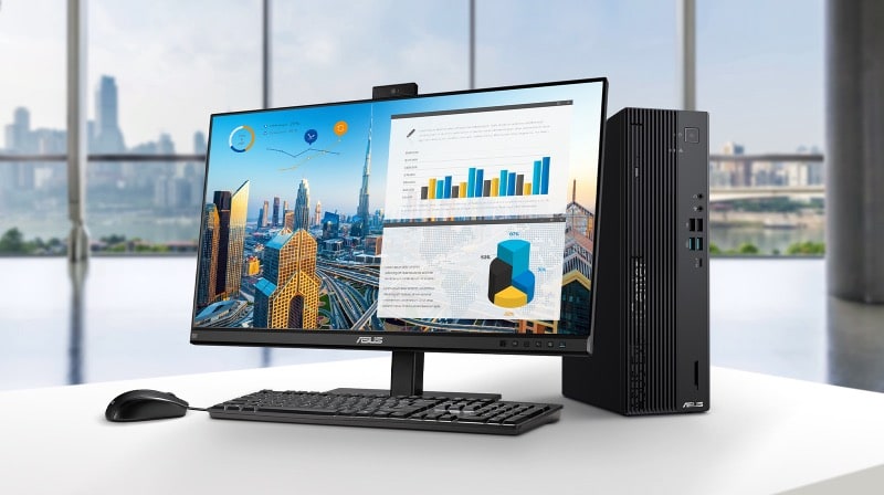 Stolní počítač ASUS ExpertCenter D7 SFF s aplikací Microsoft Copilot využívající umělou inteligenci kombinuje vysoký výkon, zabezpečení na podnikové úrovni a funkce správy v kompaktním a elegantním provedení a poskytuje firemním uživatelům flexibilní a organizovaný pracovní prostor. Je navržen tak, aby vydržel a splňoval americké vojenské normy MIL-STD-810H, je vybaven rozšiřitelným šasi, které zajišťuje prodlouženou spolehlivost a pohodlné upgrady pro profesionály.